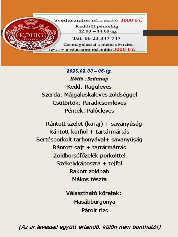 Ha inkább kényelmesen, otthon fogyasztaná el fogásainkat, ELVITELRE is kérheti kiválasztott ételeinket. Kérjük, hogy megnövekedett rendelések miatt, a szombati és vasárnapi elviteles ételeket az adott héten, lehetőleg péntekig rendeljék meg!